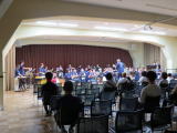 会場の遊戯室には、長椅子をぎっしりと並べていただき、金管楽器用のひな壇まであります。