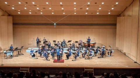 職域・一般吹奏楽連盟の主催行事で、連盟所属の2組のアンサンブルと5団体のフルバンドが出演しました。